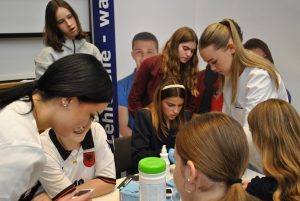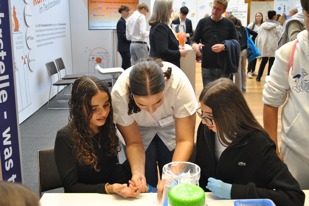 Während dieser beiden erfolgreichen Tage hatten unsere Lernenden – welche aktuell im 3. Semester sind – die Möglichkeit, interessierten Schülerinnen und Schülern der Oberstufe einen spannenden Einblick in den Beruf der Medizinischen Praxisassistentin „EFZ“ zu geben. Mit grossem Engagement informierten sie über die vielseitigen Aufgabenbereiche, den Ausbildungsweg sowie den Berufsalltag und standen den Jugendlichen bei Fragen rund um den Beruf mit Rat und Tat zur Seite.